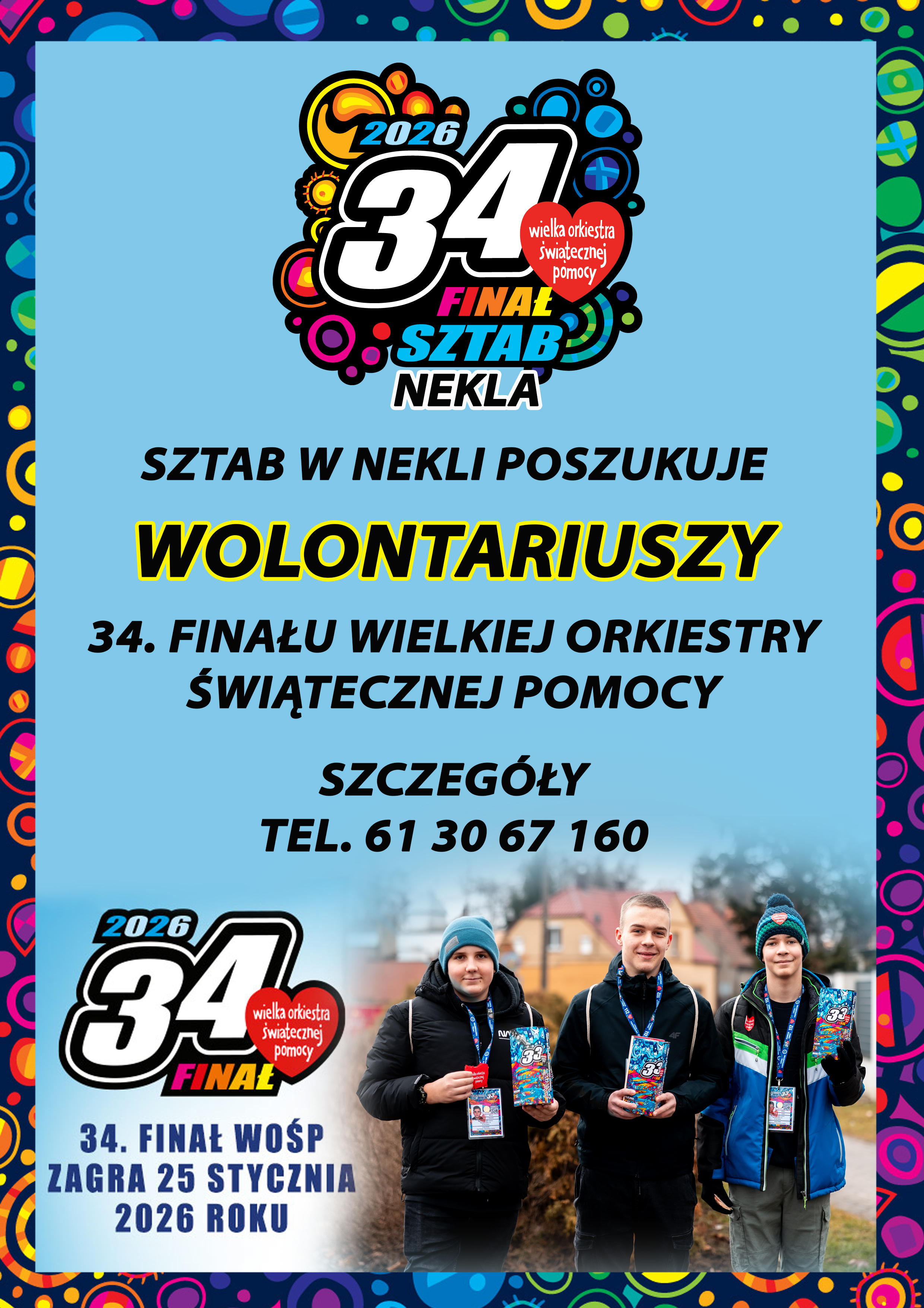 Od 17.11.2025 r. rusza rekrutacja wolontariuszy NEKIELSKIEGO SZTABU WOŚP. Każda osoba, która chce nim zostać musi wypełnić i dostarczyć Ankietę Wolontariusza 34. Finału WOŚP oraz zdjęcie w formacie jpg. nie mniejsze niż 800 x 600 pikseli.